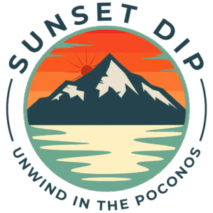 Sunset Dip home in the Poconos, blending comfort and modern amenities with breathtaking views of Lake Carobeth, perfect for creating unforgettable memories.